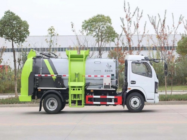 餐廚垃圾車,又稱餐余垃圾車、余廚垃圾車或者泔水車,餐廚垃圾車是垃圾車中的一種,是用于收集和運輸生活垃圾、食品垃圾(泔水)專用車輛。上裝由箱體、后門總成、后門開啟機構、密封鎖緊機構、推板機構、掛桶提升機構及操縱機構等組成。有裝、卸垃圾自動化程度高、工作可靠、密封性好、裝載容積大、操作簡便、作業(yè)過程密閉,無污水泄露和異味的散發(fā),環(huán)保性好等特點。餐廚垃圾車不僅優(yōu)化了居民居住的環(huán)境衛(wèi)生,減少了空氣中的餐廚垃圾臭味,減少孳生蟑螂、細菌的可能, 改善了環(huán)衛(wèi)作業(yè)環(huán)境,減少垃圾的四處分散造成的污染。