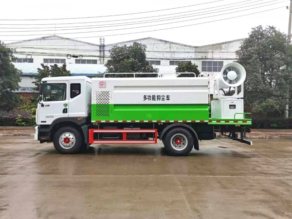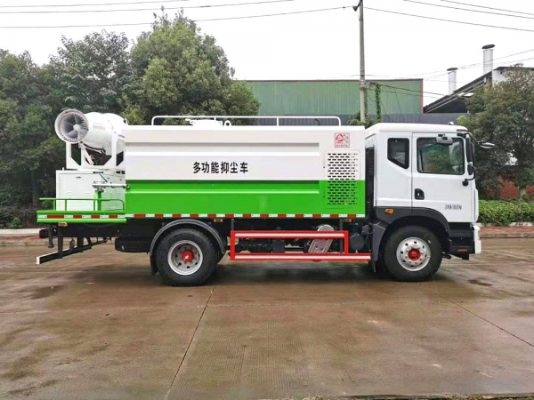 2.抑塵裝置采用國內(nèi)知名品牌,成霧量大、粒徑范圍大。霧炮噴射距離遠,且能實現(xiàn)俯仰角度可調(diào),滿足不同噴射距離工況的需求。使用副發(fā)動機驅(qū)動,傳動效率高。操作簡單,各功能通斷控制為電控氣動,一鍵切換,無需手動。