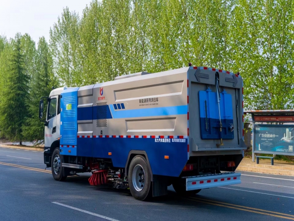 上裝配置:底盤電池提供動力,永磁同步電機驅動,可根據需要實時調速,取力操作與底盤行駛系統無任何關聯,用車體驗感**。中置2掃盤,三洋馬達,GTM高壓水泵,皖液齒輪泵,海普瑞斯液壓油缸,萬向高壓路沿清洗,免維護離心式風機,不銹鋼水箱、垃圾箱,不銹鋼高壓管路、施耐德**開關、美國傳感器、尾部LED箭頭燈;垃圾箱、水箱均帶防溢或低水位報裝置,倒車及洗掃狀態室內監控系統,尾部帶電控操作系統,20M高壓沖洗卷盤,**清掃寬度3.5m,高壓沖洗21m。 電氣系統由底盤車電路專用工作裝置操作電路組成。