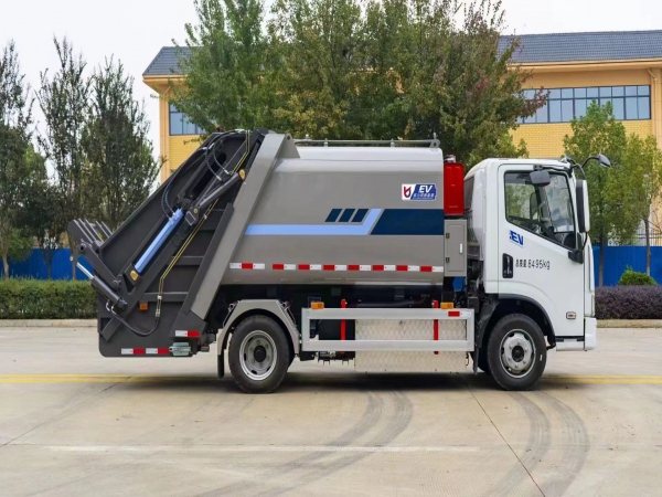 上裝配置:底盤電池提供動力,永磁同步電機驅動,可根據需要實時調速,取力操作與底盤行駛系統無任何關聯,用車體驗感**。優質高強度 Q345 錳鋼制作箱體,尾部帶污水箱,光電感應,海普瑞斯油缸、多路換向閥、皖液齒輪油泵,日本華爾卡密封圈,can 操作模式,帶駕駛室操作,尾部標配三角斗或掛桶翻轉架。標配壓實閥(背壓閥),有效增加垃圾密實度,增加裝載量。