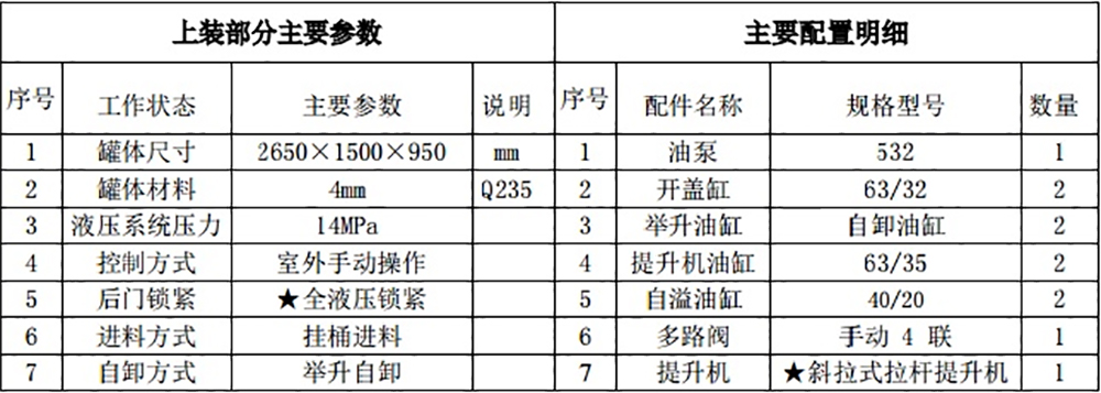 凱馬藍牌4方餐廚垃圾車 車輛主要技術參數