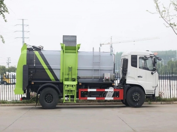 餐廚垃圾車,又稱餐余垃圾車、余廚垃圾車或者泔水車,餐廚垃圾車是垃圾車中的一種,是用于收集和運輸生活垃圾、食品垃圾(泔水)專用車輛。上裝由箱體、后門總成、后門開啟機構(gòu)、密封鎖緊機構(gòu)、推板機構(gòu)、掛桶提升機構(gòu)及操縱機構(gòu)等組成。有裝、卸垃圾自動化程度高、工作可靠、密封性好、裝載容積大、操作簡便、作業(yè)過程密閉,無污水泄露和異味的散發(fā),環(huán)保性好等特點。餐廚垃圾車不僅優(yōu)化了居民居住的環(huán)境衛(wèi)生,減少了空氣中的餐廚垃圾臭味,減少孳生蟑螂、細菌的可能, 改善了環(huán)衛(wèi)作業(yè)環(huán)境,減少垃圾的四處分散造成的污染。