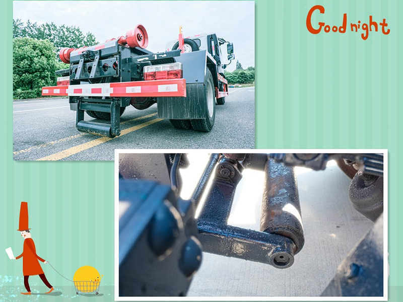 ◇上裝配置:強度合金鋼一體式主勾臂,加強型副梁,鑄鋼尾托輪,手自一體室內外液壓操控,加強型上裝,伸縮臂,油缸加粗,加裝液壓支腿,搭配建筑垃圾箱使用,提升能力8000Kg。?液壓完成上箱+下箱+鎖緊+自卸等作業,實現一車配多箱的循環轉運。