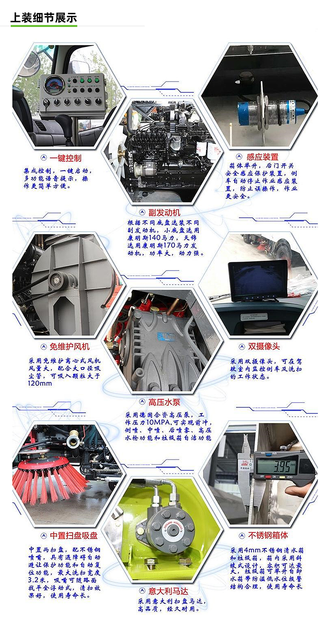 2:具備倒車保護裝置,在作業(yè)過程中如遇緊急倒車,智能化的控制系統(tǒng)會自動停止作業(yè)并收回掃盤、吸盤和側噴桿;