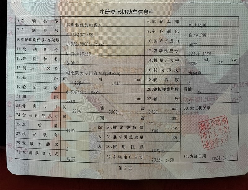 2024年1月,藍(lán)牌福田小卡之星3壓縮垃圾車,國六,5.8方,全柴115馬力,5檔變速箱,2850軸距,底盤配置:帶空調(diào),6.50輪胎,氣剎,行駛7000多公里,相當(dāng)于準(zhǔn)新車,客戶使用很少,上裝配置:凱力上裝,尾部翻轉(zhuǎn)板可掛120/240L垃圾桶,尾部夜間照明,威森博樂油缸,多路閥,皖液壓泵,CAN控制盒,帶遙控器,全車各項(xiàng)功能正常,手續(xù)齊全,隨時(shí)提檔過戶,交強(qiáng)險(xiǎn)年檢同步到26年1月