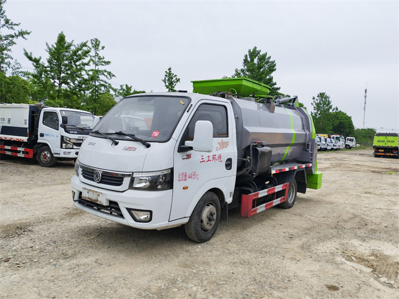 洗系統(tǒng),可對(duì)箱體裝卸進(jìn)行清洗,推擠式排料方式,箱體與后門(mén)總成全密封液壓開(kāi)啟,帶側(cè)掛提桶裝置,