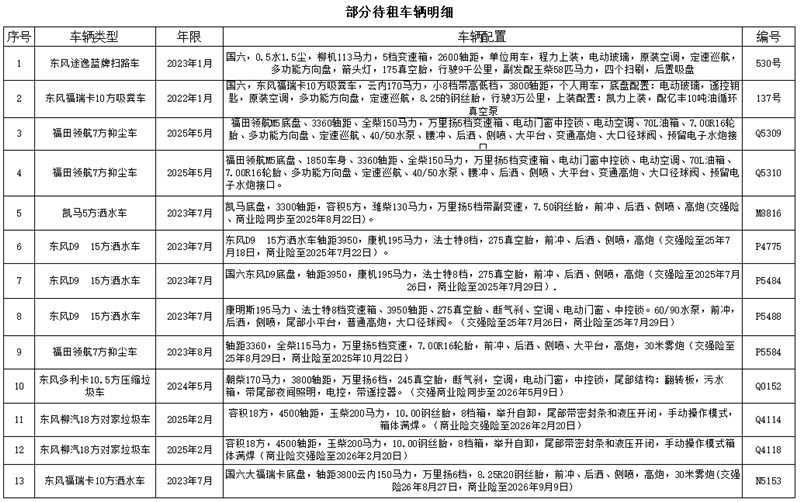 所有的車輛均可租可售,租期一年或以上可發全新車輛(含新能源車輛)、提供投標車輛資料、高價回收二手環衛車,以舊換新、