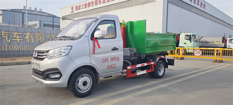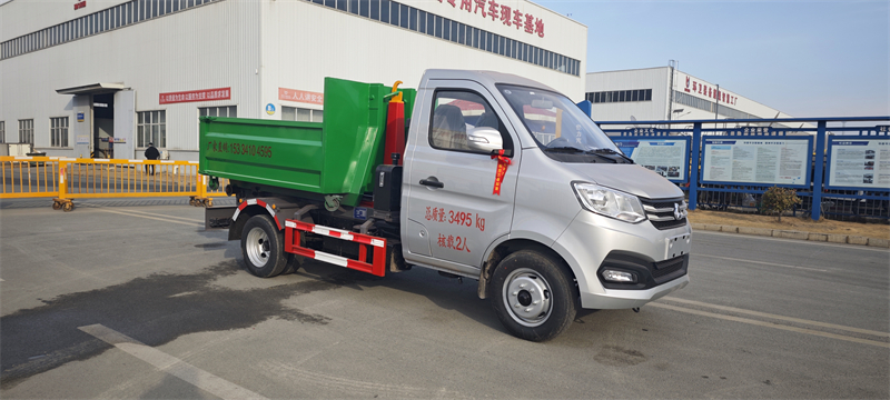 一同拉至車上運走同時可自卸,降低了工人的勞動強度。該垃圾車的收運方式是