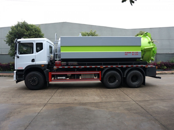 | 其他 | 該車專用裝置為水罐和吸污罐,主要用于城市管網的清洗和疏通.當前懸為1250(mm)時對應后懸為2150(mm),當前懸為1450(mm)時對應后懸為1950(mm).吸污罐運輸介質:液態污染物,密度:800千克/立方米,載質量:9600(kg),吸污罐罐體有效容積12.6立方米.罐體尺寸(長(mm)×直徑(mm)為:5450×1900.清水箱運輸介質:水,密度:1000千克/立方米,載質量:3200(kg),有效容積為3.36立方米,清水箱截面為圓弧及多邊形組成,截面積為0.42平方米,水箱外形長(mm)為:4600.兩種罐體不能同時滿載.側防護材料為Q235,連接方式為連接支架固焊在副車架大梁上.后防護材料為Q235,連接方式:用螺栓結構連接件固焊在主車后端,后部防護裝置斷面尺寸(寬×高)50×120(mm),后部防護離地高度:500(mm).ABS型號及生產廠家為:3631010-C2000/東科克諾爾商用車制動系統(十堰)有限公司,J ABS/焦作博瑞克控制技術有限公司.安裝帶有衛星定位功能的行駛記錄儀.僅采用4350+1350(mm)軸距底盤. | ||